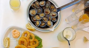 Mesa cheia de sabor no Banana’s Pub: lapas na chapa, anéis crocantes, pão grelhado e bebidas frescas para completar o momento. O lugar ideal para par…