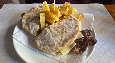 Um clássico que nunca falha no Banana’s Pub: tostas bem recheadas, alface fresca e batatas caseiras crocantes. Ideal para uma pausa saborosa ou um la…